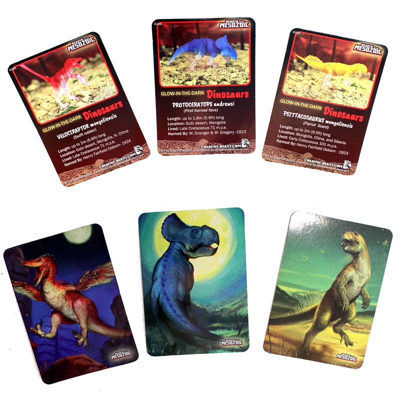 Beasts of the Mesozoic: Glow-in-The-Dark Dinosaur 3-Pack - 4" Velociraptor, Protoceratops & Psittacosaurus - 1/18th Scale Action Figures, Collectible