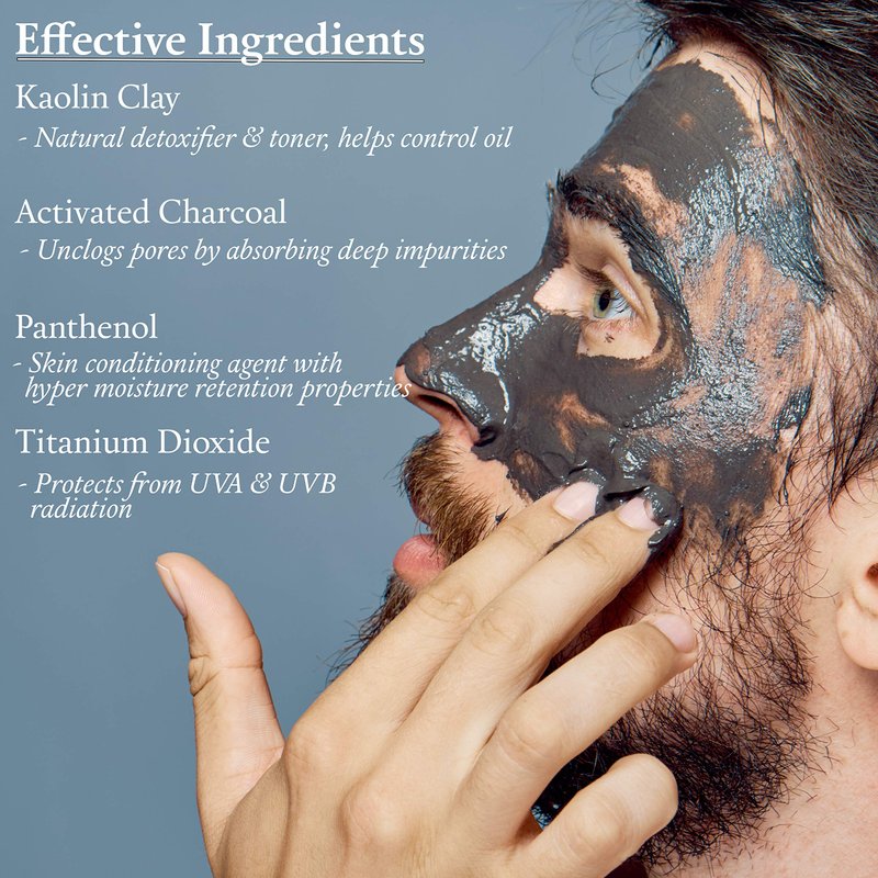 - CLEANSING FACE MASK: Yes, men can benefit from using facial masks as well! Men’s pores are bigger, so they are more susceptible to dirt and grime getting caught in their skin. Natural activated charcoal detoxifies the skin by absorbing oils from the skin's surface and deep within pores.