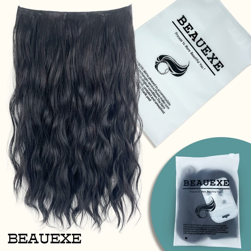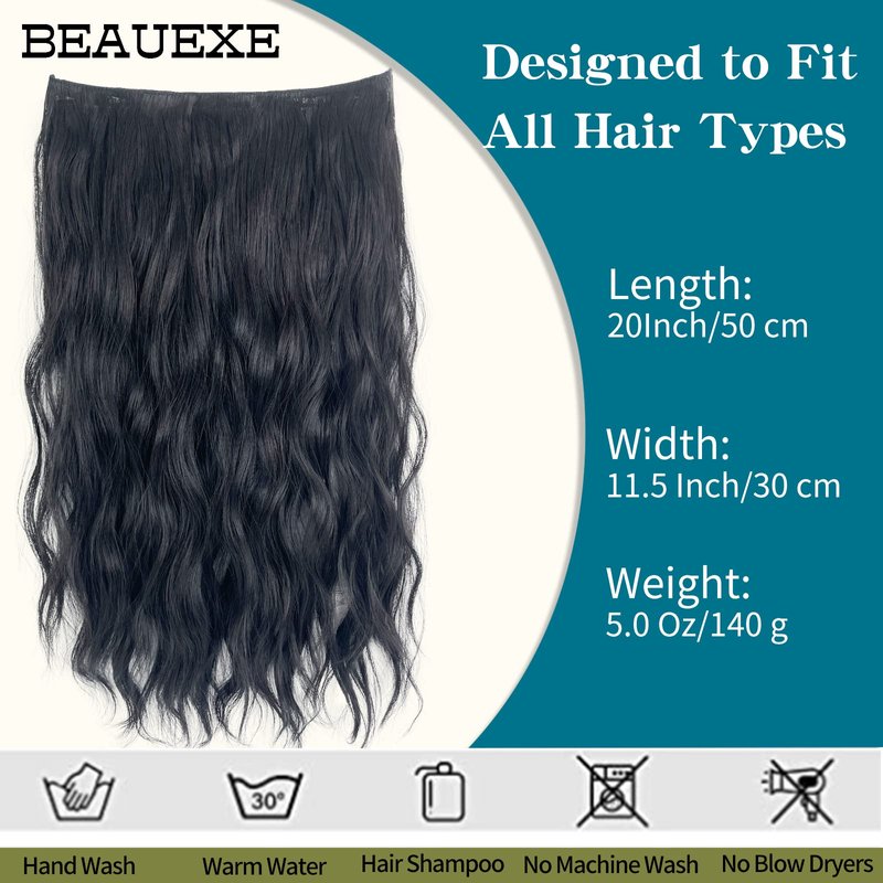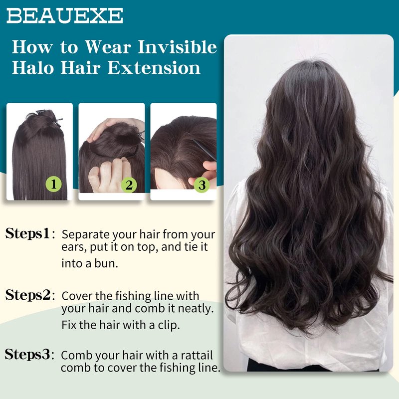 - SUPER EASY-It's time to upgrade your hair texture and length with BEAUEXE's halo extensions! No tape, no glue and no sew!Natural wavy hair extensions with removable clip and adjustable invisible transparent wire can easily increase your hair volume,length texture,color or style quickly.