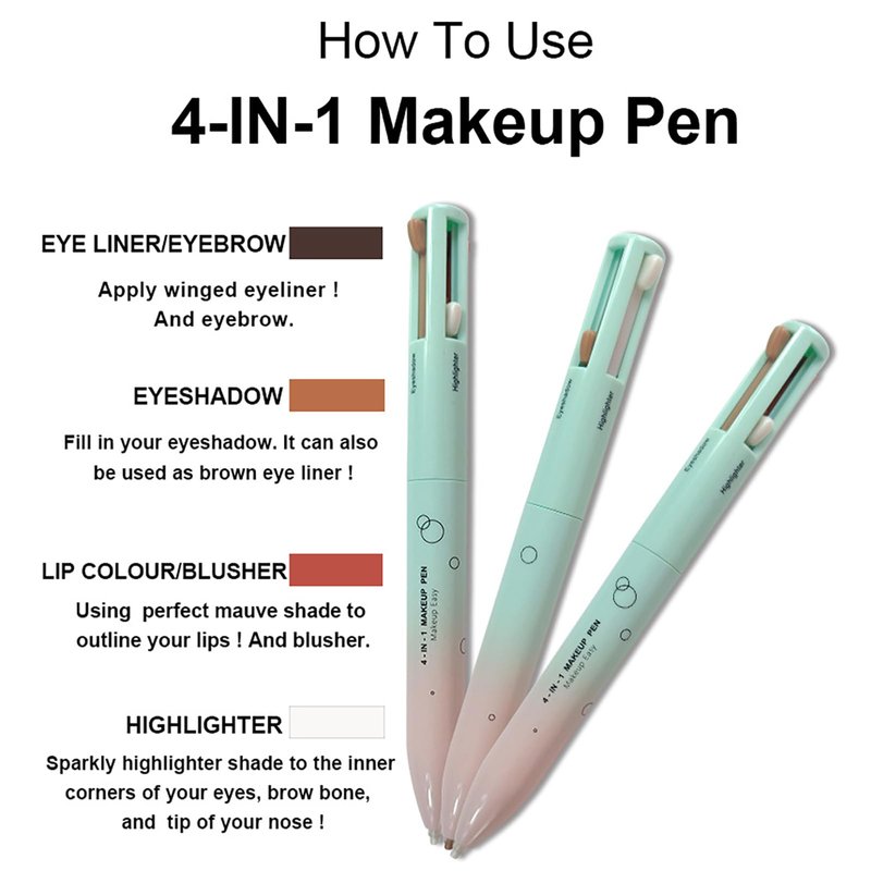 - 【4-in-1 Makeup Pen】: This multifunctional makeup pen can meet your various makeup needs. Brown and black can be used as eyebrow pencils or eyeliners, red can be used as lip liner, and white can be used as highlighter.
