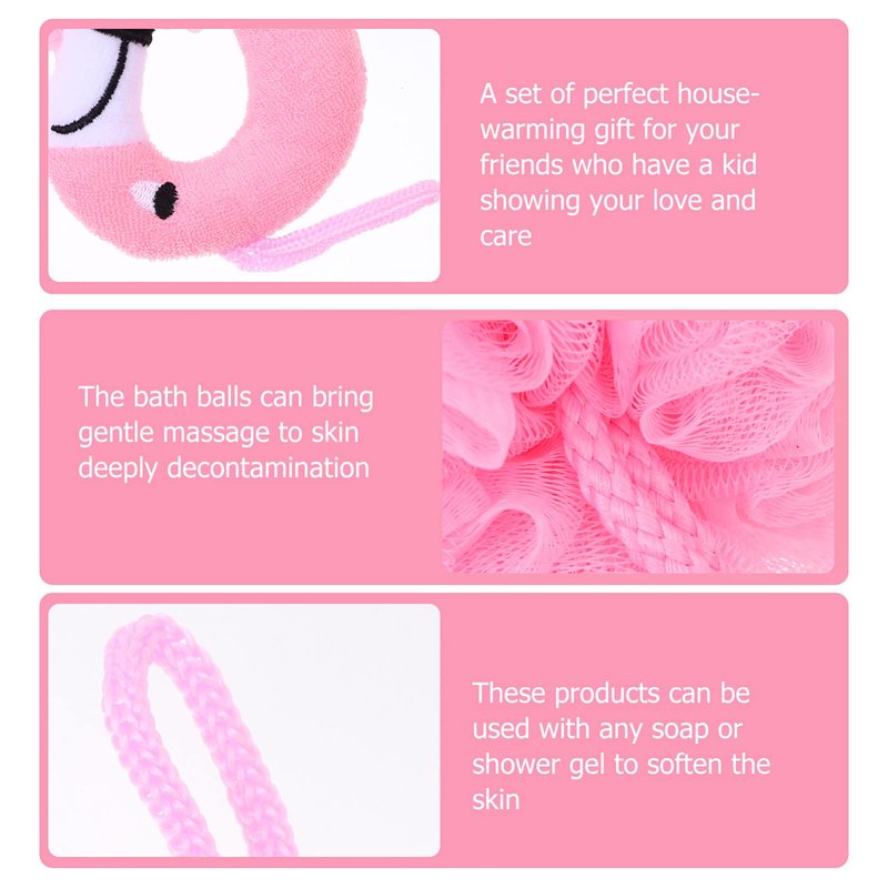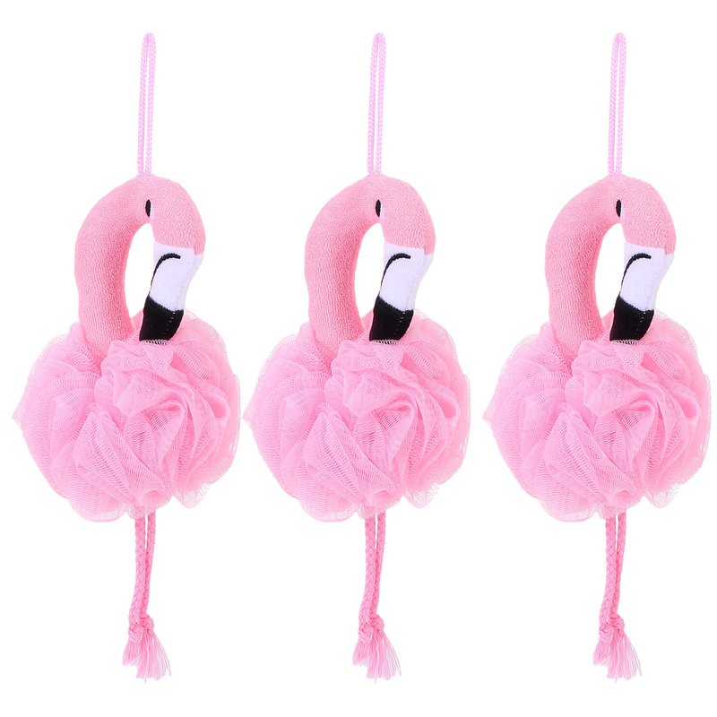 Beaupretty 3PCS Shower Loofah Bath Sponge Mesh Pouf Scrubber Ball Body Washer Kid Flamingo Body Exfoliator Foaming Mesh Nets Skin Clean Exfoliating Scrubber for Bathroom