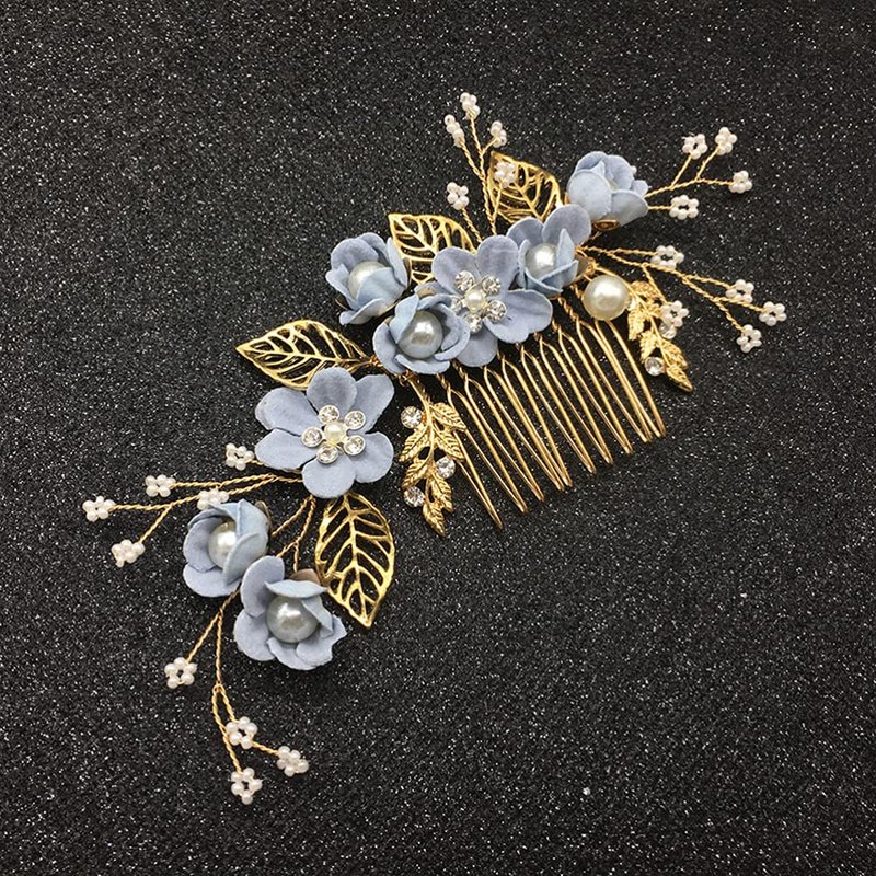 Beaupretty Wedding Hair Comb Rhinestone Flower Clip Headdress Crystal Bridal Hair Accessories (Blue)