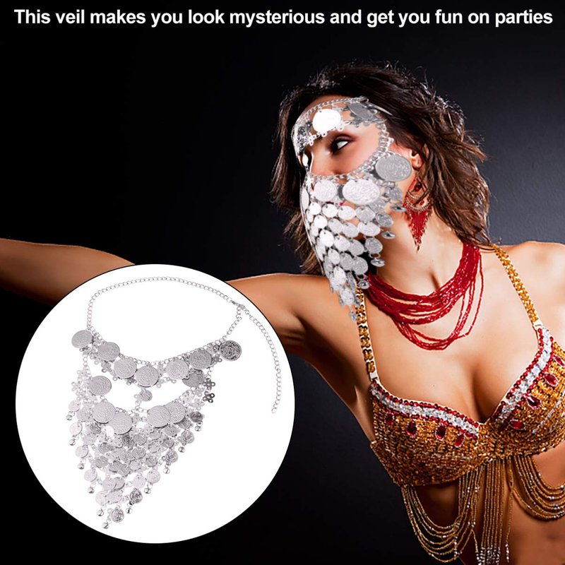 Beaupretty Women Masquerade Masks Face Chain Metal Jewelry Belly Dance Face Coin Veil Halloween Dance Play Accessories Silver