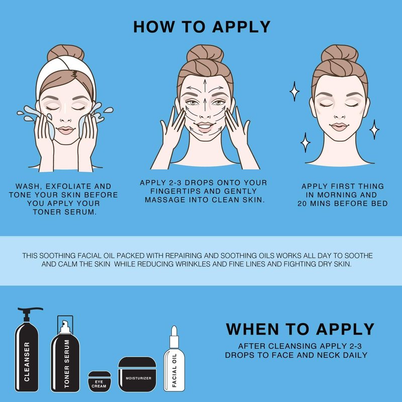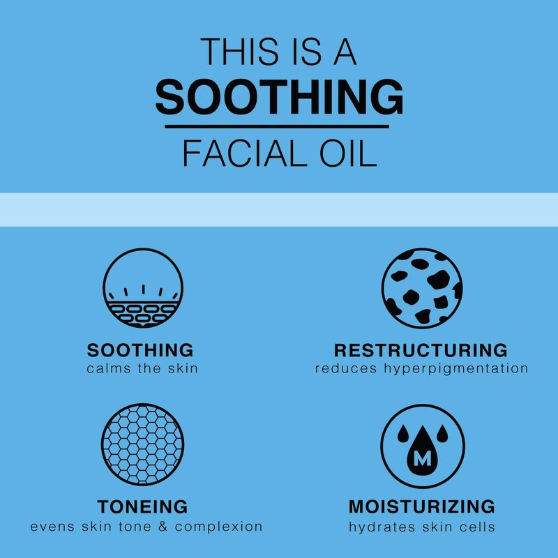 Potent yet gentle enough for everyday use, "This is a SOOTHING Facial Oil" is a quick and simple addition to your daily skin care routine. Apply just 2-3 drops post cleansing and gently massage to see instant results that leaves skin feeling soft and supple. 2 FL OZ - Made in USA. Cruelty-free, Natural/Vegan ingredients.