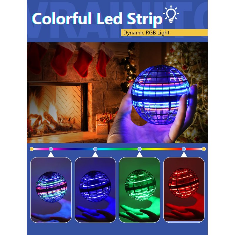 - 【High-Tech Flying Orb Ball Set of 2】Experience the fun with our set of two hand-controlled drone balls, each featuring a gyroscope and smart AI chip. It glows in vibrant colors, offering varied flight paths, skills, including boomerang effects