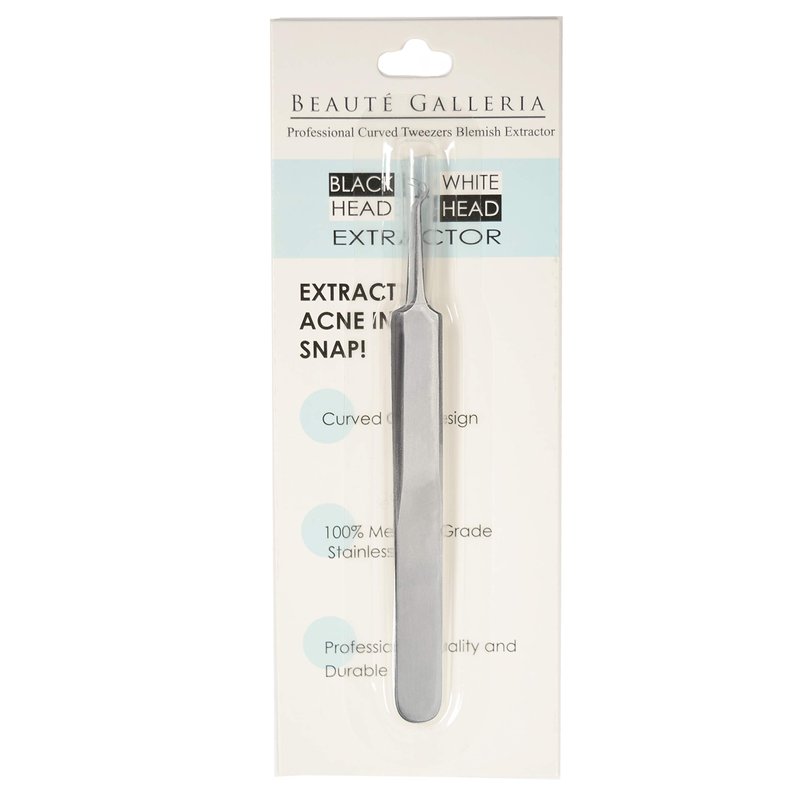 - [CURVED BLACKHEAD BLEMISH EXTRACTOR TOOL] Includes 1 Beaute Galleria Blackhead / Blemish Extractor Tool for treatment of facial blemishes; treat blackheads, whiteheads, acne, pimple, and comedones easily.