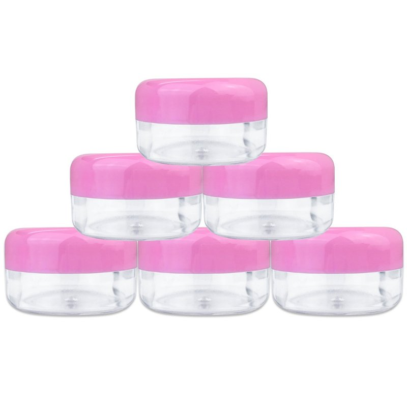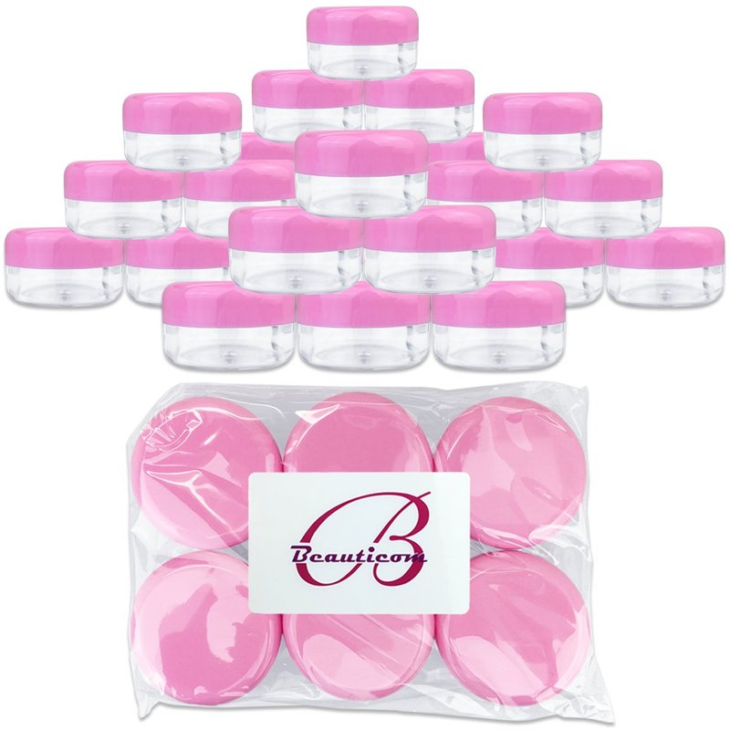 Beauticom 15 gram/15ml Empty Clear Small Round Travel Container Jars with Lids for Make Up Powders, Eyeshadow Pigments, Lotions, Creams, Lip Balm, Lip Gloss, Samples (24 Pieces, Pink Lid)
