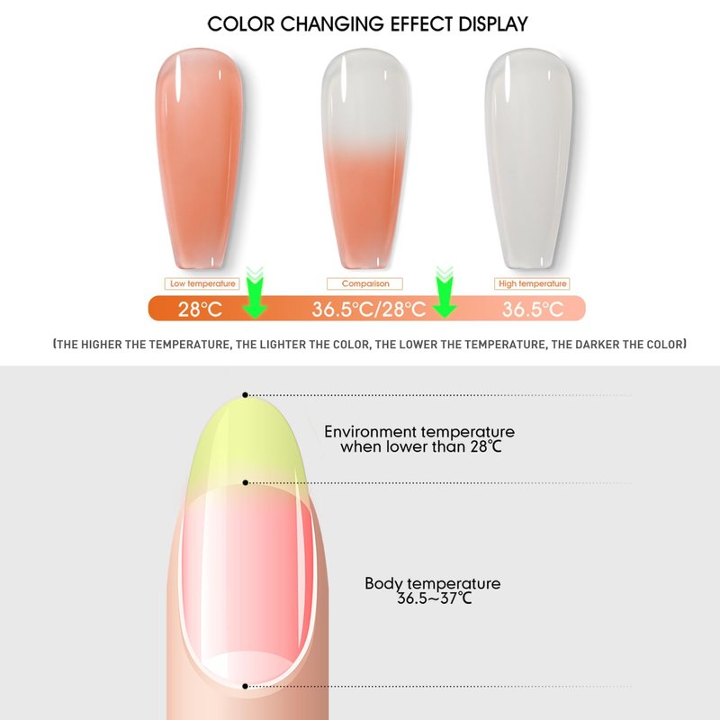- 6*10ml Color Changing Gel Polish Set:Our gel nail polish capacity is 10ml, which more durable. The color of gel nail polish changes depending on the temperature of your nails!