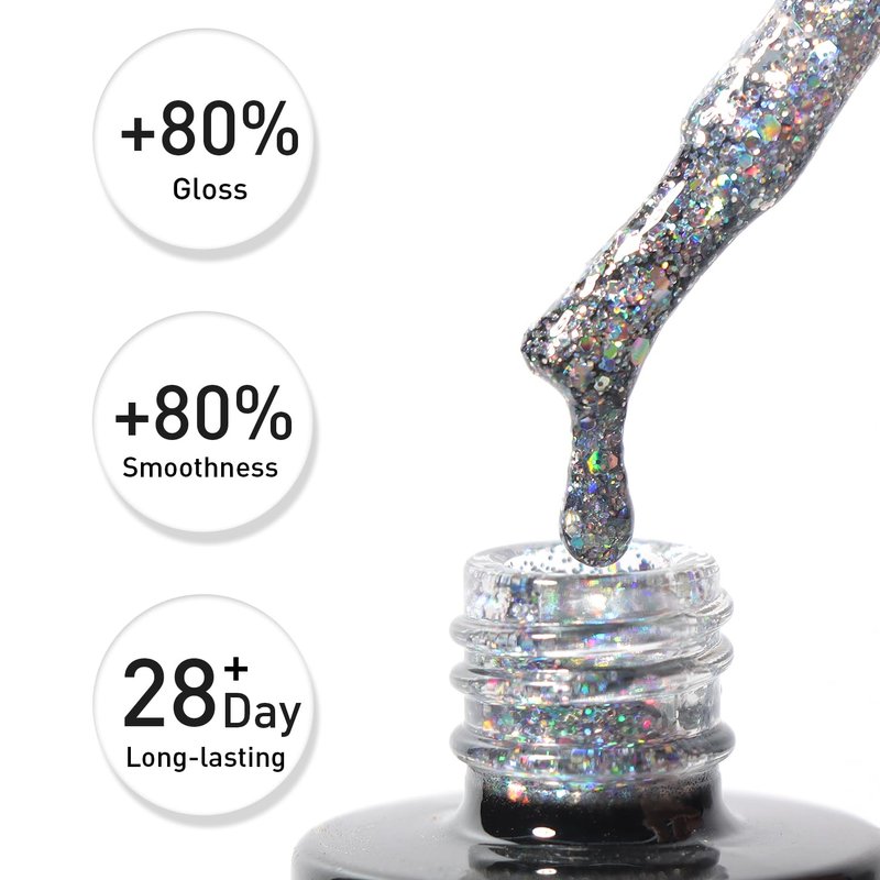 - Healthy Ingredients & Ideal Gift: The silver glitter gel polish made from healthy ingredients, non-toxic, low-odor, and low-irritation. Perfect for dates, parties, birthdays, Valentine's Day, anniversaries, Christmas or Mother's Day.