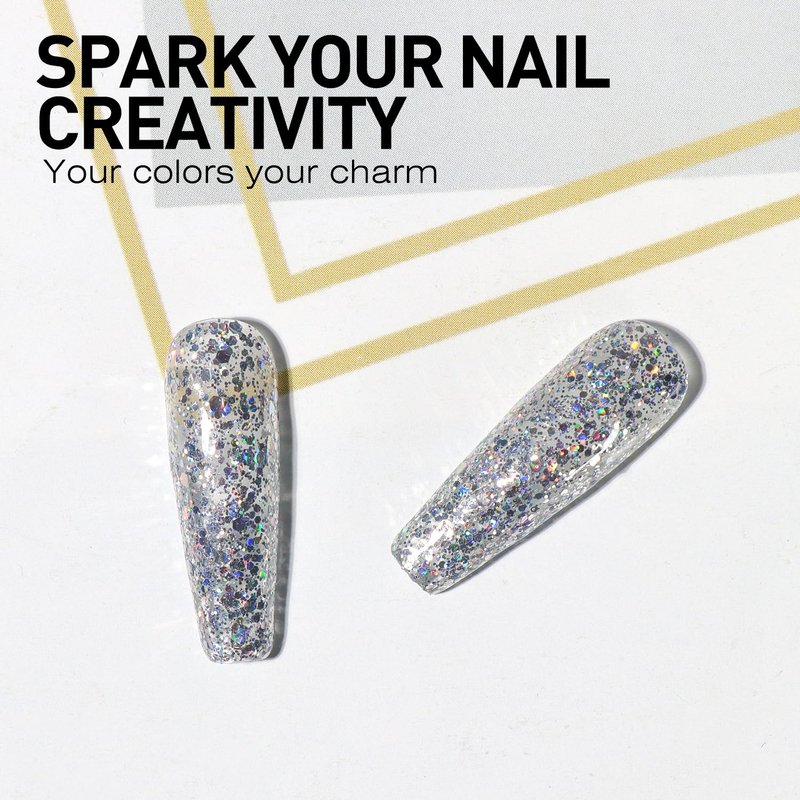 - Nail Art At Home: Get salon-quality results at home with our gel nail polish glitter, pretty silver sparkly colors lets you create more diverse nail art styles! Dries in 30 seconds under a nail lamp.