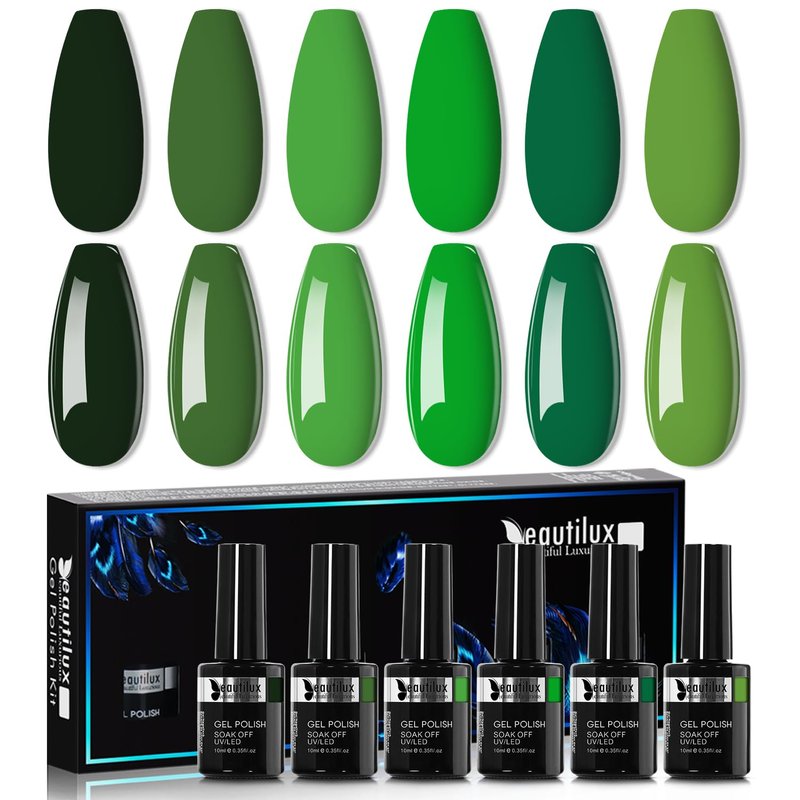 beautilux Green Gel Nail Polish, 6 Colors 10ml Green Gel Polish, Soak Off Forest Green Nail Gel Nail Art Starter Manicure Salon