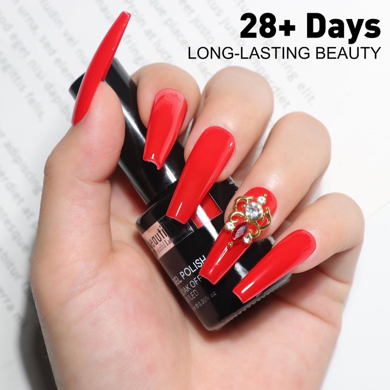- No More Peel-Offs & Lasts For 28+Day: Beautilux red gel polish is uniquely formulated to provide easy coverage, high pigmentation, and a smooth surface texture that won't crack or chip, cover with only one coats. So you don't have to worry about your nails peeling off in the shower or while doing housework. Maintains perfect shine for more than 28 days.