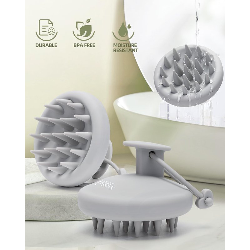 BEAUTLOHAS. Scalp Massager Shampoo Brush, Scalp Scrubber with Soft Silicone Bristles, Scrubber Scalp Exfoliator for Dandruff Removal,Hair Grouth,Wet Dry Hair Massager Brush for All Hair (Gray)