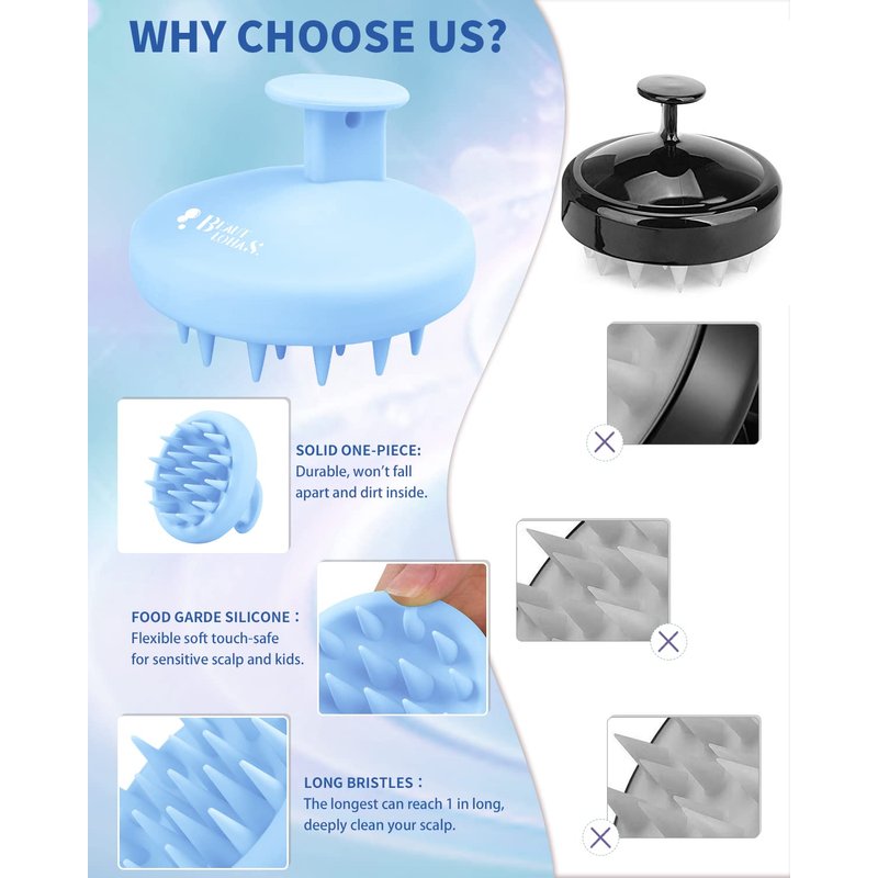 BEAUTLOHAS. Silicone Scalp Massager Shampoo Brush, Shower Scalp Scrubber with Soft Bristles, Scalp Brush for Hair Growth & Dandruff Treatment, Wet Dry Hair Massager for All Hair Types of Women (Blue)