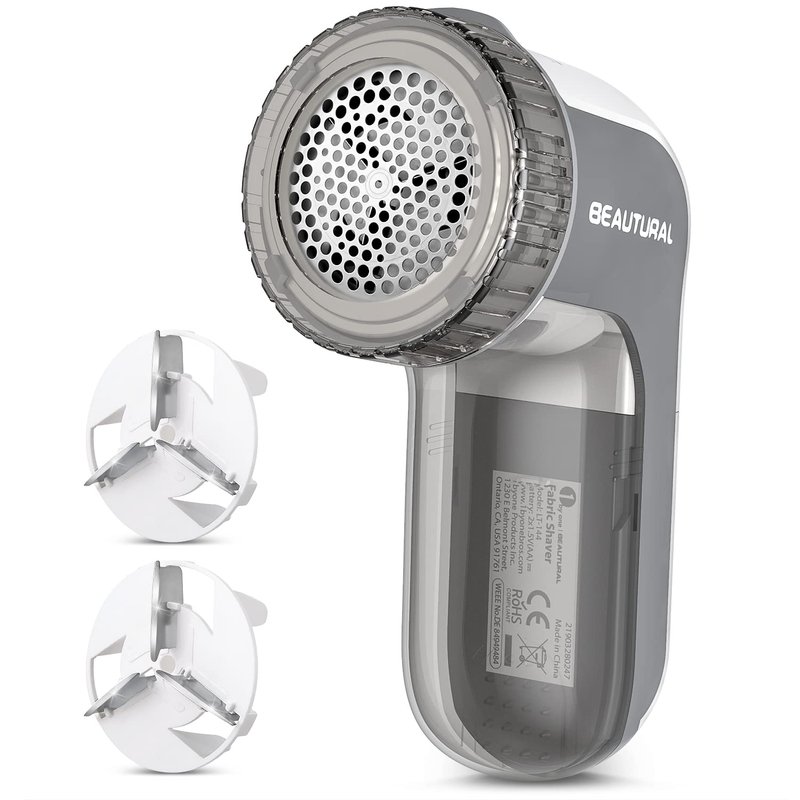 BEAUTURAL Fabric Shaver and Lint Remover, Sweater Defuzzer with 2-Speeds, 2 Replaceable Stainless Steel Blades, Battery Operated, Remove Clothes Fuzz, Lint Balls, Pills, Bobbles Gray