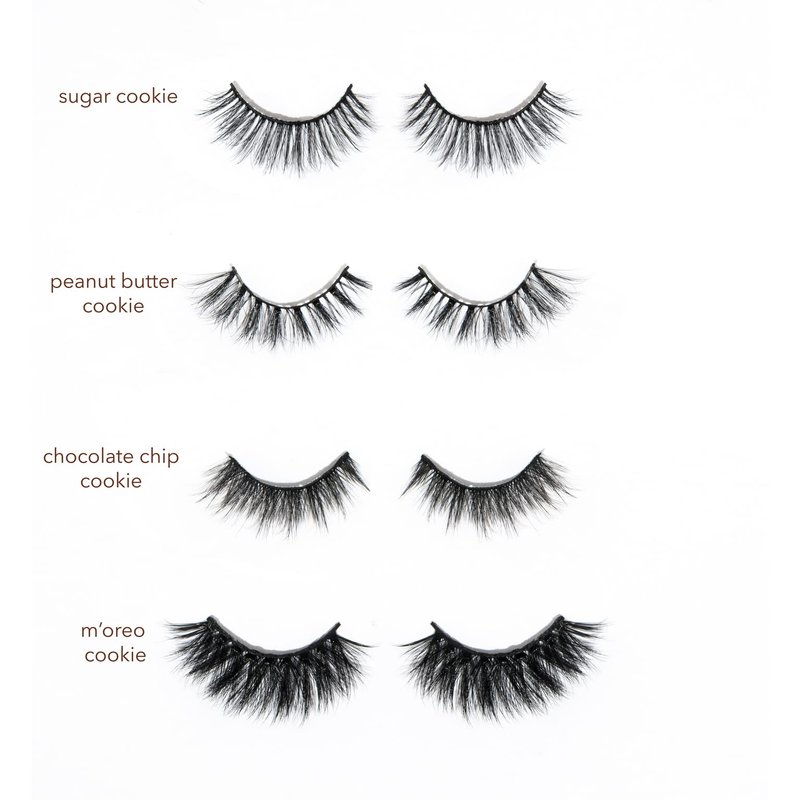 - FOUR UNIQUE STYLES: Choose from four versatile lash styles: Sugar Cookie for a natural, wispy look, Peanut Butter Cookie for full and flared lashes, M'Oreo Cookie for dramatic volume, and Chocolate Chip Cookie for wispy, flared, full-volume lashes. Each pair comes in a compact with a mirror for easy application.