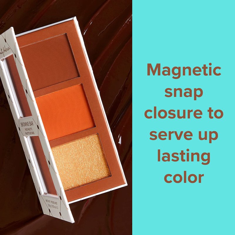 - MAKEUP PALETTE: Beauty Bakerie's Brownie Bar serves up three universal shades of contour, bronzer, and highlighter in a pocket-sized palette designed to be sleek and travel friendly. The fade-free formula lasts all day helping your sweet beat stay pigmented.