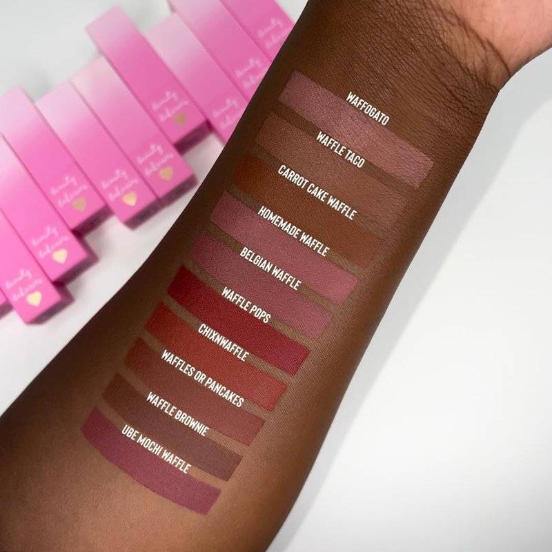 "I've done things, waffle things"...but you can make up for it with our Waffle Things Lipsticks! Despite being matte, this glides on and stays in place while you're out doing all of the waffle things you can dream of! Indulge in 10 shades of decadence.