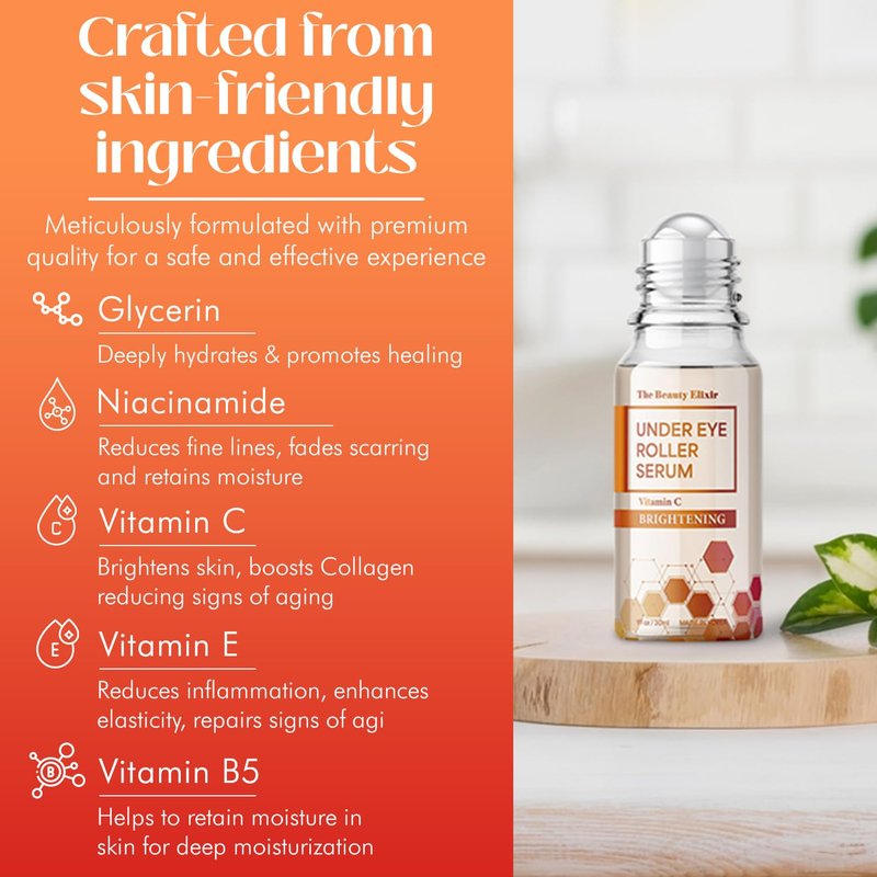 - MONEY-BACK GUARANTEE: If you have any challenges using The Beauty Elixir Vitamin C Under Eye Roller, reach out anytime for help from our skincare experts. We'll respond ASAP! If you're not totally satisfied, we will refund you in full.