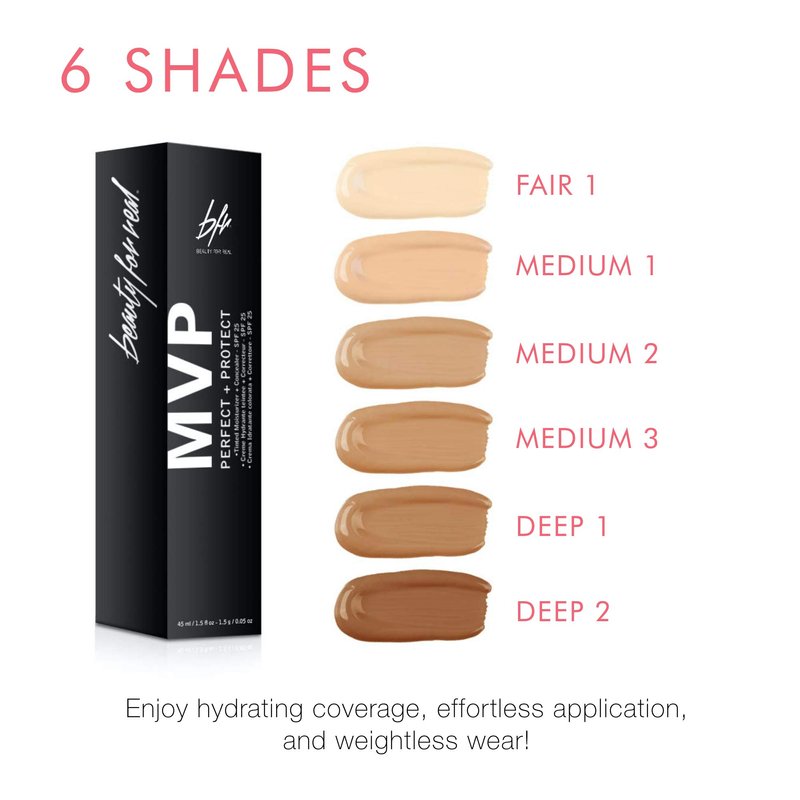 - 5-IN-1 COMPLEXION PERFECTOR - MVP Perfect + Protect is five products in one: a lightweight tinted moisturizer, a texture-blurring primer, a revolutionary complexion perfector, SPF 25 mineral sunscreen, and a self-setting concealer.