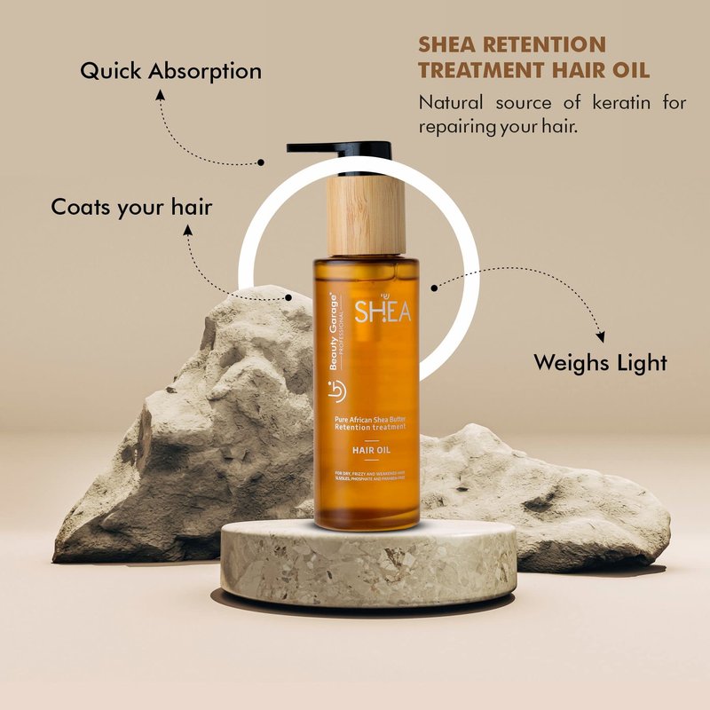 - Shea-Oil-formulated Retention Treatment Oil offers a natural source of keratin for repairing your hair.
