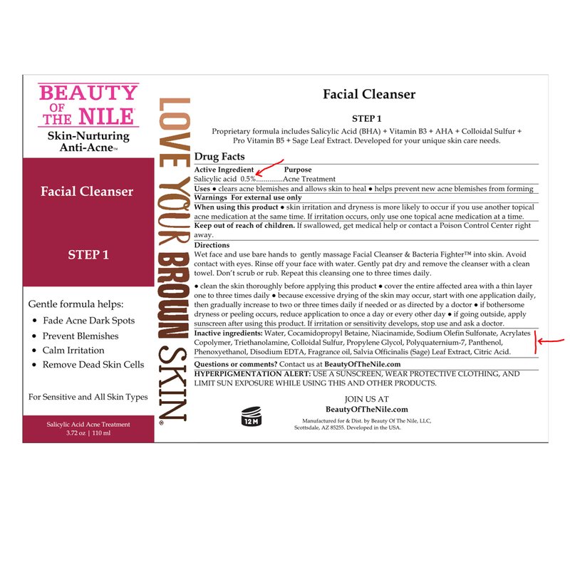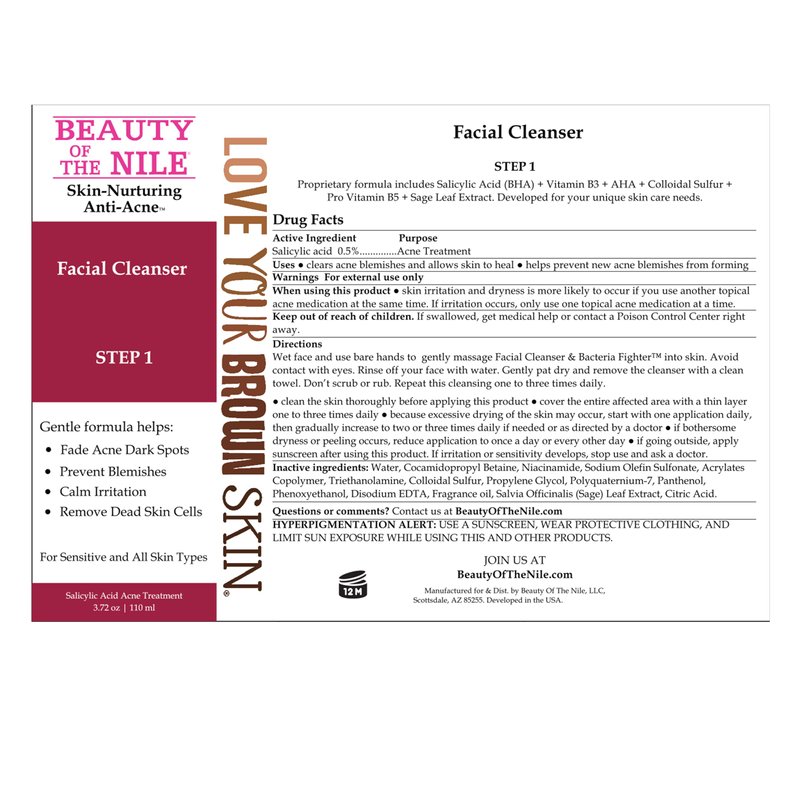 Beauty Of The Nile Facial Cleanser and Acne & Blemish Fighter™ for Skin-of-Color, Acne Spots Oily Skin Hydrate Salicylic Acid Niacinamide 3.72 Oz