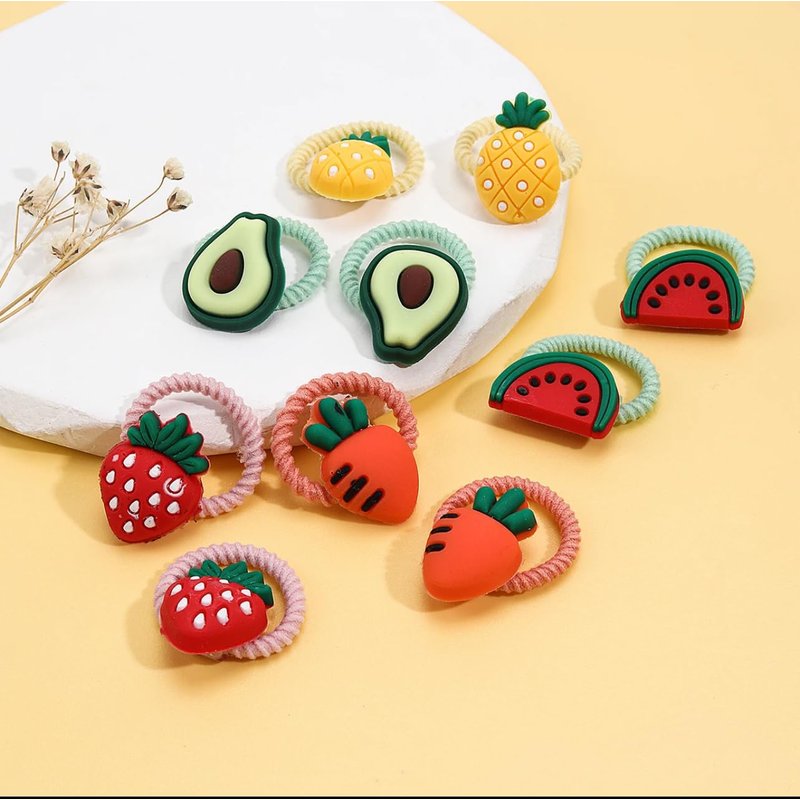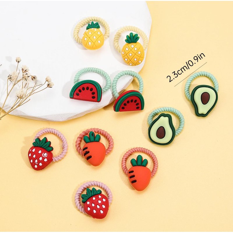 Beauty Queen 20Pcs Baby Hair Ties for Girls,Cute Small Hair Ties for Thin Hair,10 Pairs Ponytail Holders Elastic Hair Rubber Bands Hair Accessories for baby girls infant toddler kids (Style Fruits)