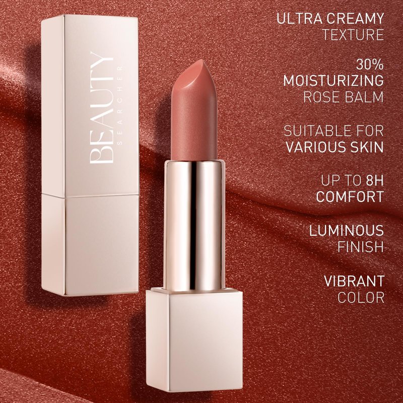BEAUTY SEARCHER Lipstick, Metallic Shine Finish Lip Balm Glossy Hydrating Nude Velvet Red Long-Lasting Moisturisation Luxury Lip Stick Makeup # 03 Champagne Pink