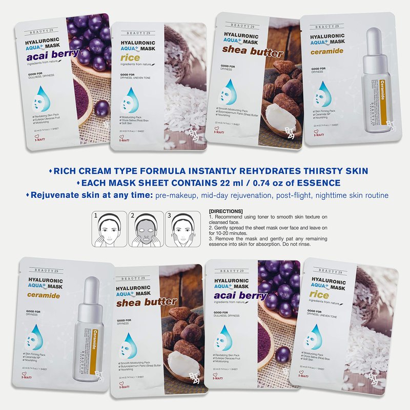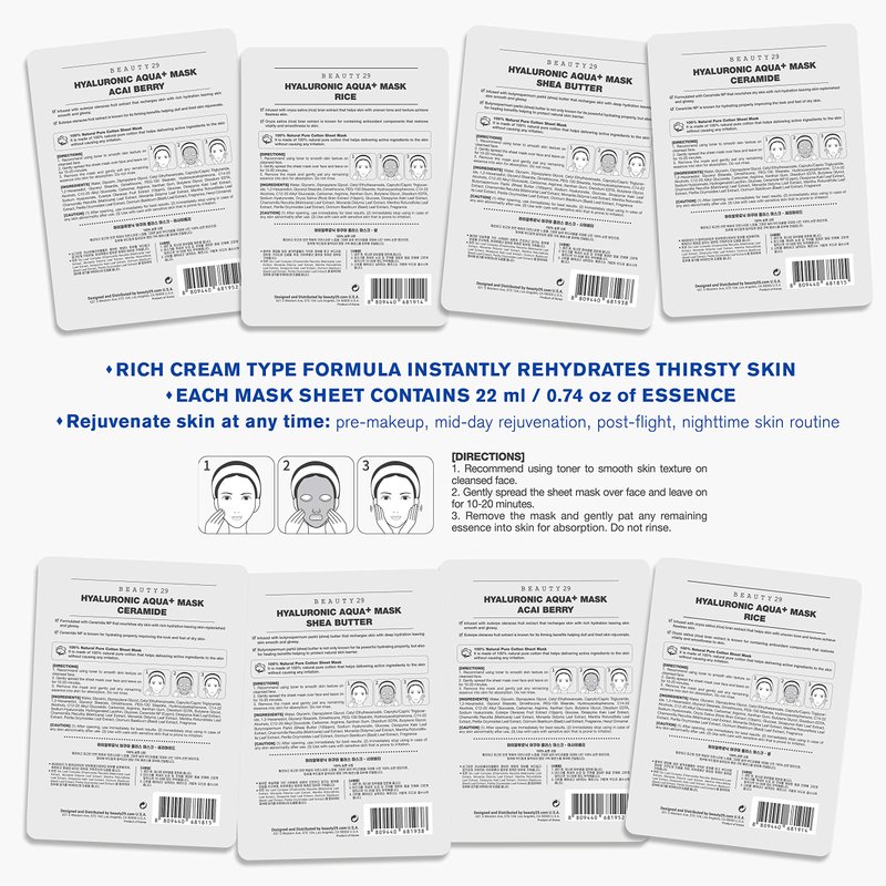 - BEAUTY29 Hyaluronic Aqua Plus RICH CREAM TYPE Mask Set - Total 8 Count Facial Mask Sheets