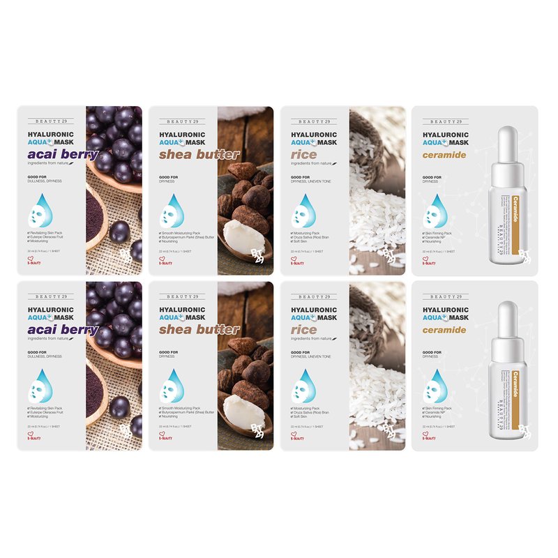 BEAUTY29 Hyaluronic Aqua Plus Essence Full Face Facial Sheet Mask 8 Sheets Combo - Good for Dry Skin