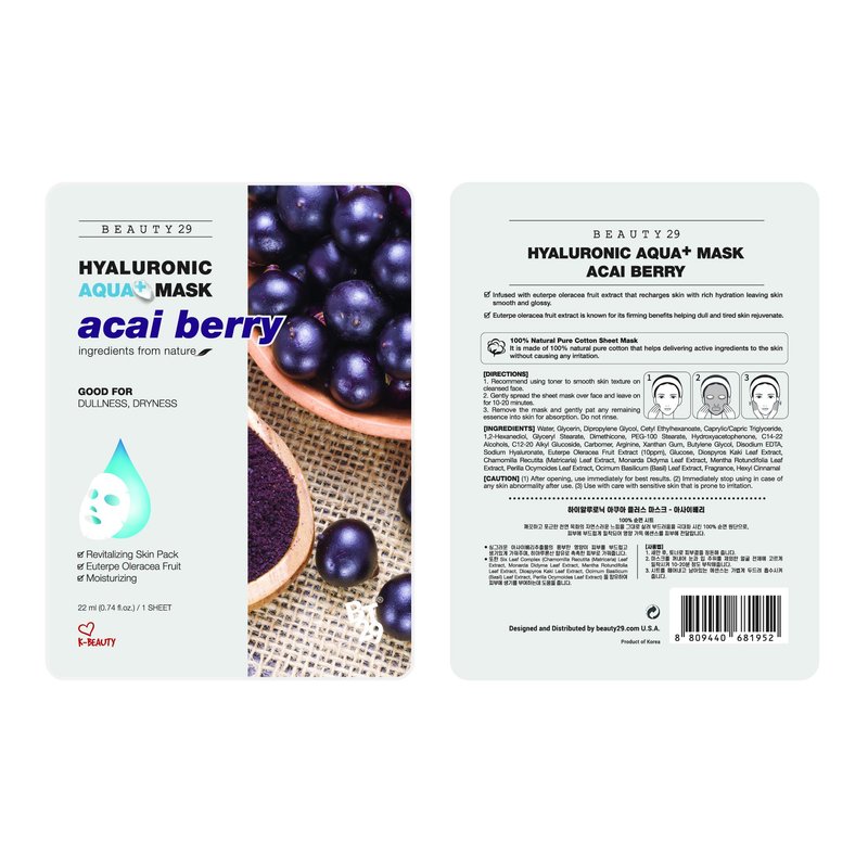 BEAUTY29 Hyaluronic Aqua Plus Essence Full Face Facial Sheet Mask (Acai Berry)