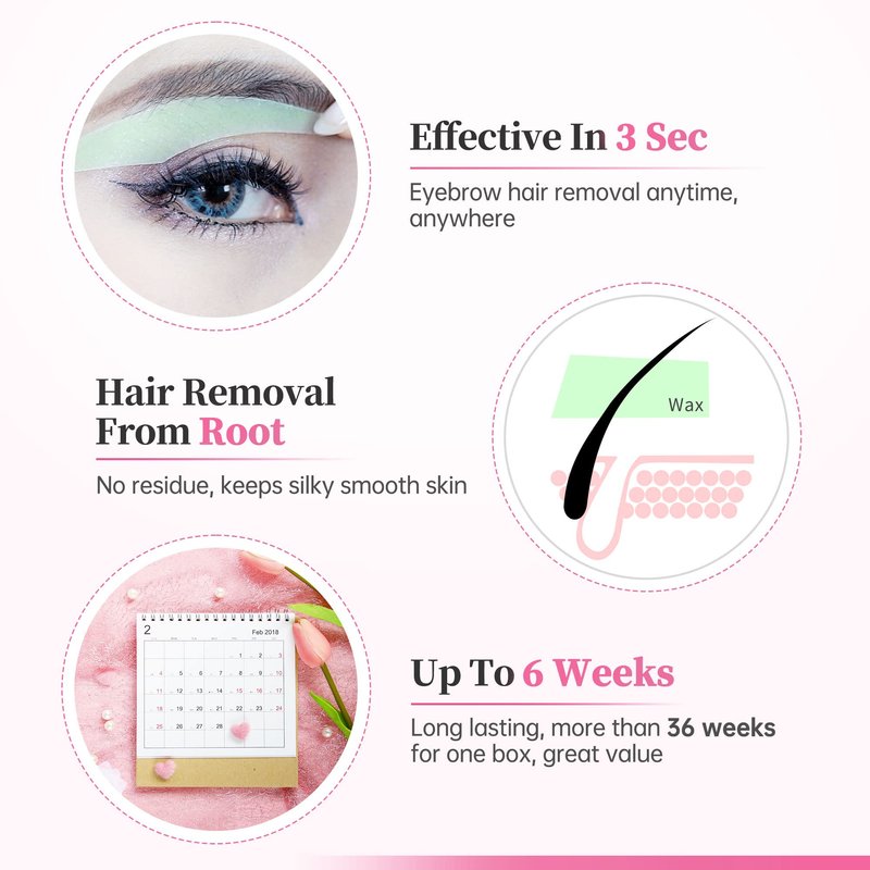 - Easy to Use: No need pre-heating, just stick it on the intended area of hair removal, wait 3 seconds, and then rip off the strip, no pain feeling, enjoy a relaxed and pleasant eyebrow wax experience.
