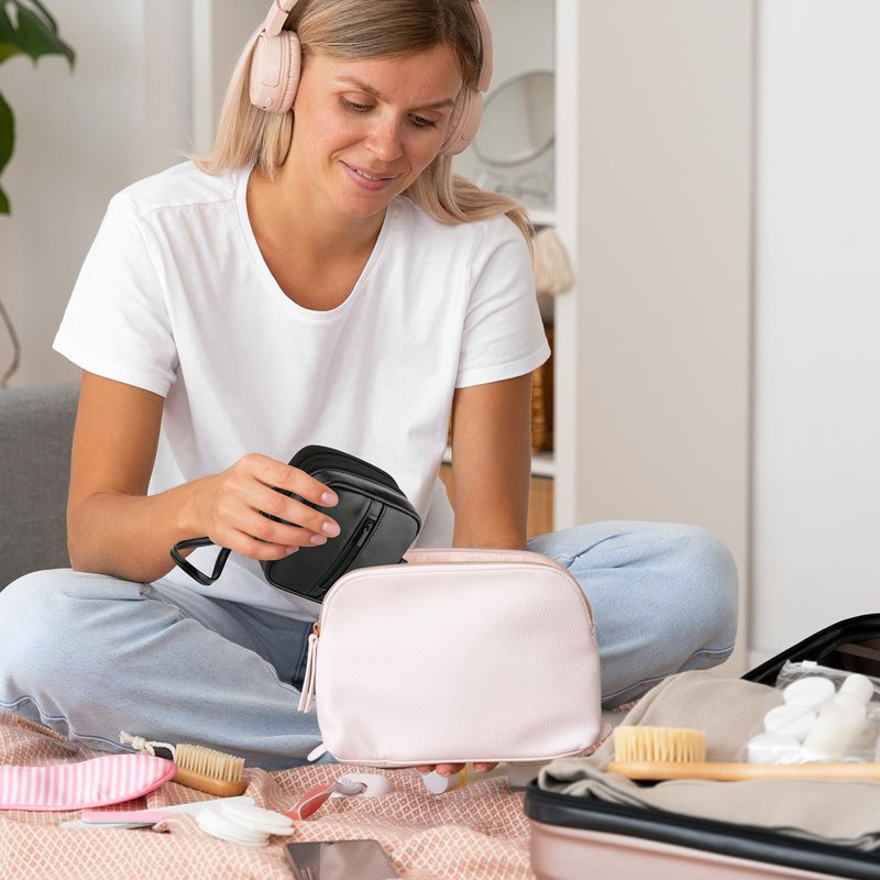 - 【Practicality】The design of two storage spaces can perfectly store your makeup remover wipes and cosmetics, allowing you to find what you need at any time when traveling.