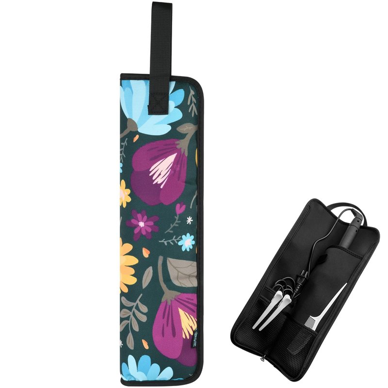 Beautyflier Universal Curling Iron Travel Bag, Canvas Heat-Resistant Curling & Flat Iron Holder Tote Bag, Hot Curling Iron Holder for Hair Tools Travel Case or Daily Use (Color Flower)