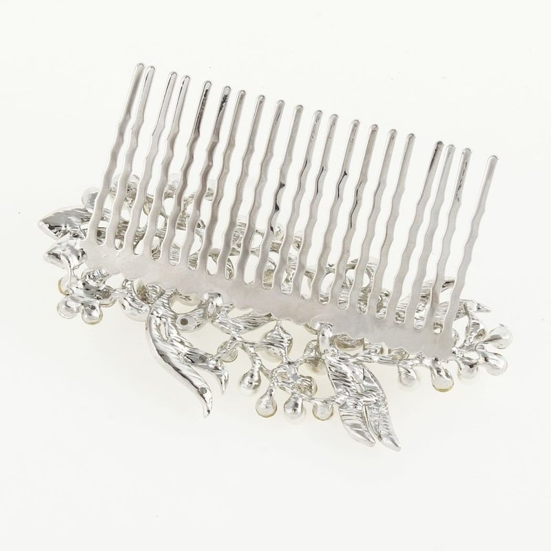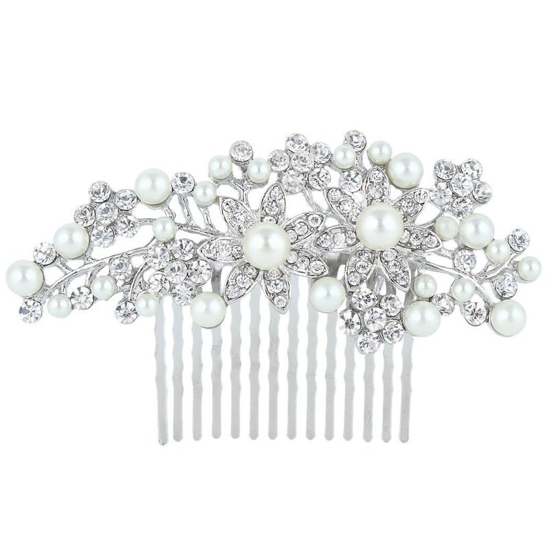 Bridal Flower Cream Simulated Pearl Clear Austrian Crystal Hair Comb