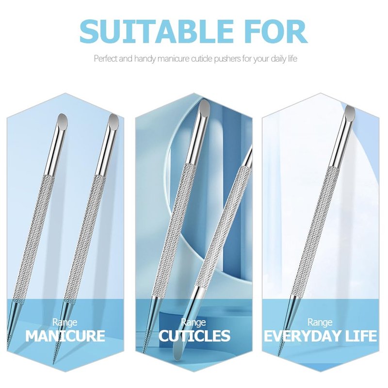 - Cuticle pusher remover-- cuticle scraper cuticle pusher stainless steel for cleaning nail cuticles dual sided cuticle pusher. quick and easy for cleaning natural, false or acrylic nails, which bring you a lot of conveniences.