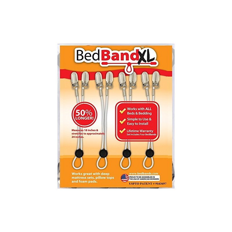 Bed Bandxl. Not Made in China. USA Worker Assembled. 50% Longer. Smooth Sheets on Any Bed. Bed Sheet Band, Holder, Gripper, Suspender, Strap. Sleep Better.