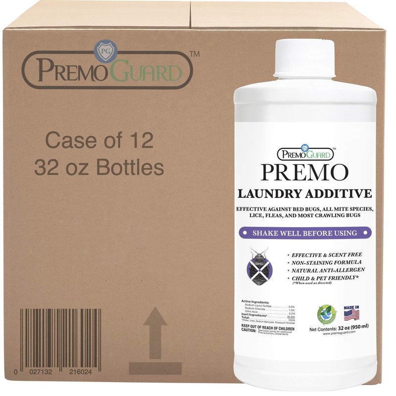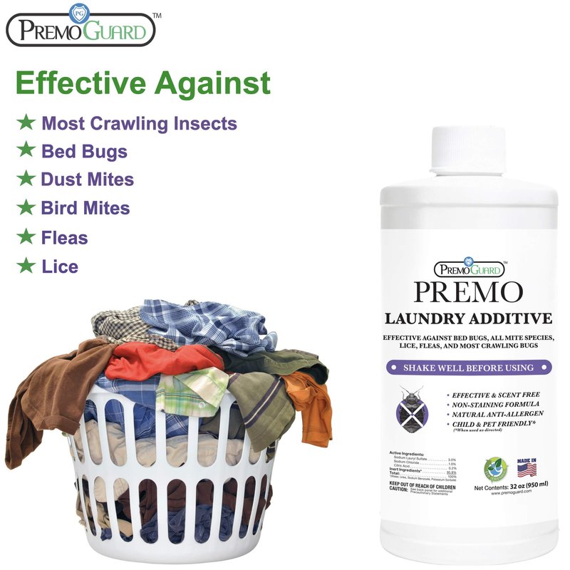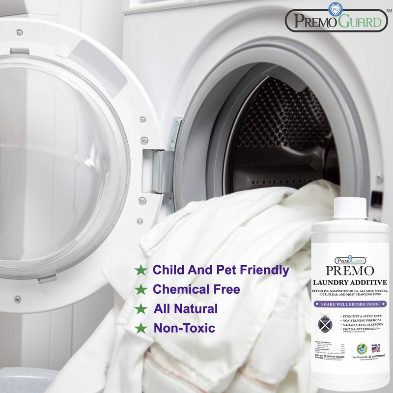 Bed Bug & Mite Liquid Laundry Detergent Additive By Premo Guard – 32 oz – Child & Pet Friendly – Stain & Odor Free – Best Natural Treatment – Industry Approved – Satisfaction Guarantee, Unscented
