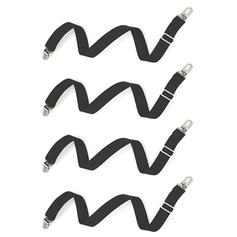 Adjustable length- All straps are adjustable. Works with all types of bed sheets, fitted sheets, flat sheets ,mattress pads,sofa,table,baby's cribs and more.