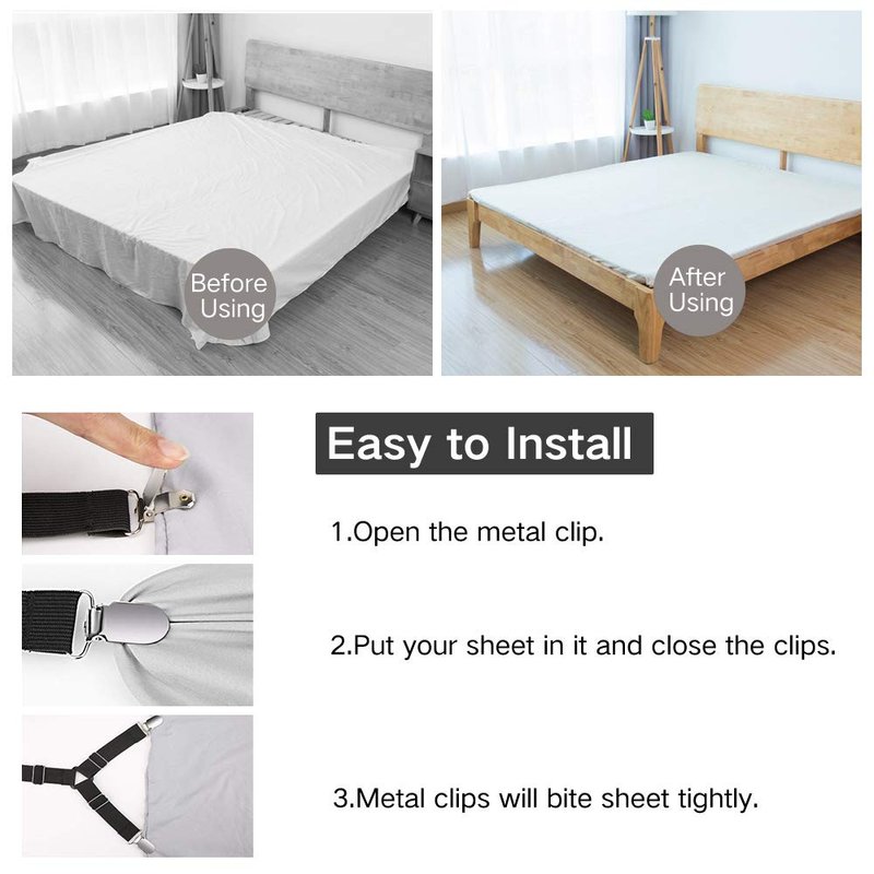 - Stable Triangle Design: As we know, triangle is more stable than other shape. So Our triangel bed sheet suspenders can keep your bed and bed sheet tidy all the time.
