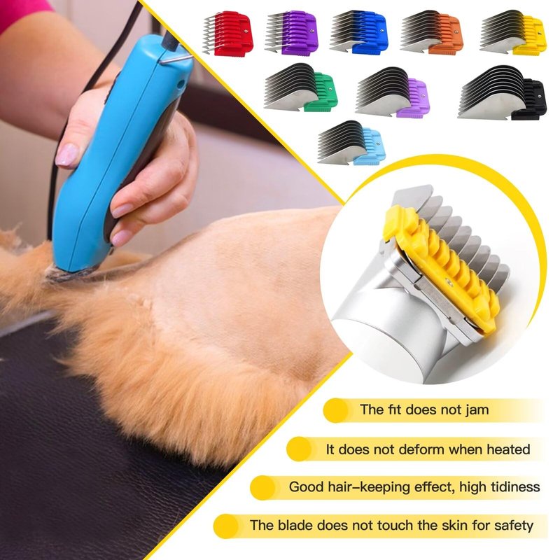 Bedaily Animal Stainless Steel Attachment 9 Color Guide Comb Set, Compatible for Andis/Oster A5/ Wahl KM Series Clipper Detachable Blade Pet, Dog, Cat, and Horse Clippers