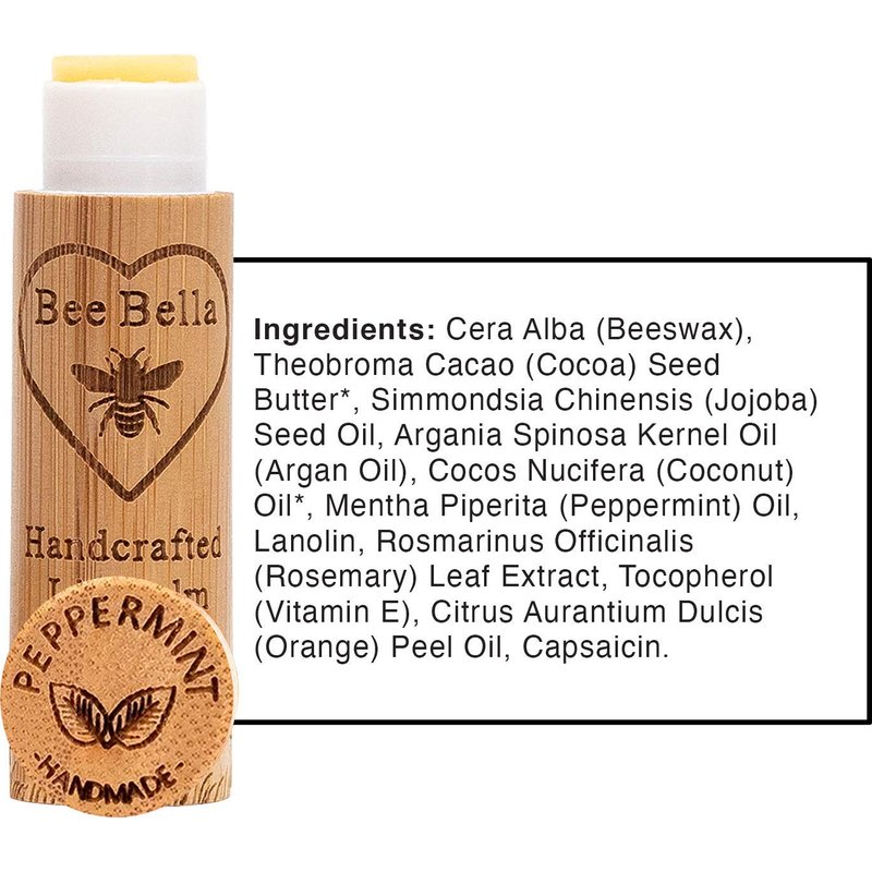 Bee Bella Lip Balm, Peppermint, 3 Pack - Hydrating Lip Care, 100% Natural, Original Organic Beeswax with Vitamin E, Handmade in USA, Christmas & Advent Gift, Stocking Stuffer