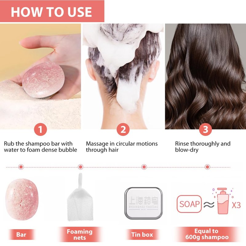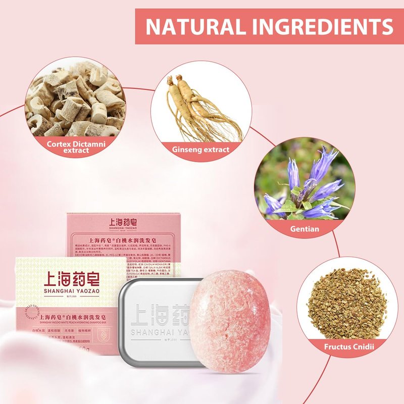- Elevate Your Hair Care: Our White Peach Hydrating Shampoo Bars are enriched with natural ingredients perfectly tailored to moisturize, nourish, and smooth your hair (Key ingredients of Dictamnus dasycarpus、Sophora angustifolia、Gentiana scabra、Panax ginseng、Cnidium monnieri、Prunus persica、Milk protein、Avena sativa)