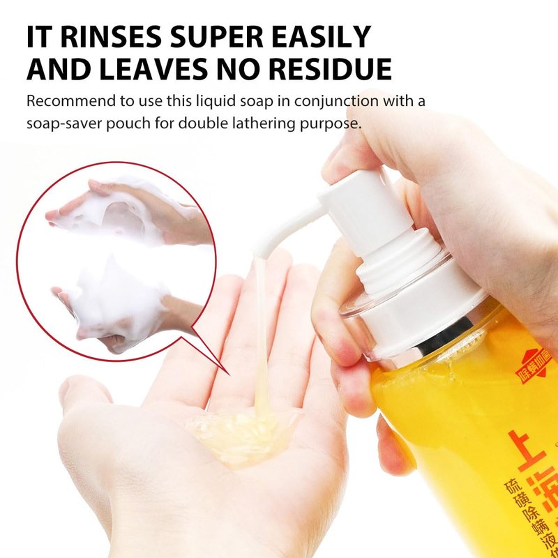 - IDEAL FOR FAMILY USE: Each bottle contains 10.8 Fl Oz(320g), for family daily use. Our sulfur soap does not have a powerful scent and does not require lots of water to rinse off. Recommend to use this liquid soap in conjunction with a soap-saver pouch for double lathering purpose. If your feel any discomfort, please stop using and contact us for getting a satisfactory solution