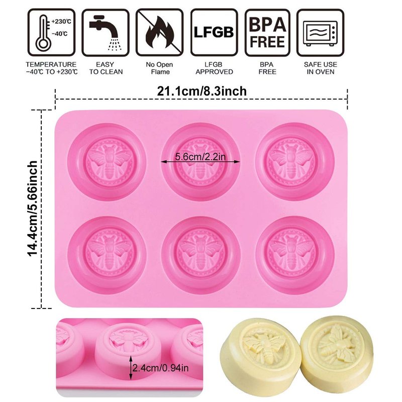 Bee Silicone Molds - Round Honeybee Silicone Molds for Homemade Soaps, Lotion Bar, Jello, Bath Bomb, Beeswax, Resin, Chocolate and Dessert (Pink)