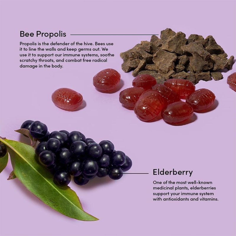 - IMMUNE SUPPORT LOZENGES: Clean, effective remedies that are backed by science. Made with highly concentrated bee propolis, zinc and Vitamin D to support your immune system on the go.