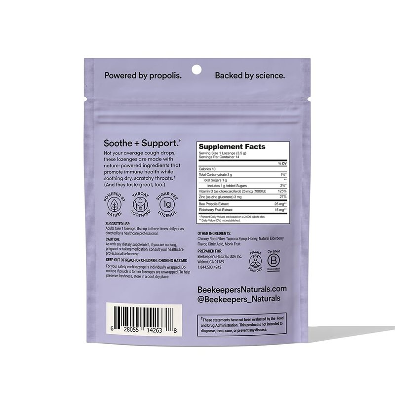 - NATURAL COUGH DROPS: Not your average cough drops, these honey lozenges are made with powerful ingredients, like raw honey, propolis, Vitamin D and zinc, that promote immune health while soothing dry, scratchy throats. (And they taste great, too.)