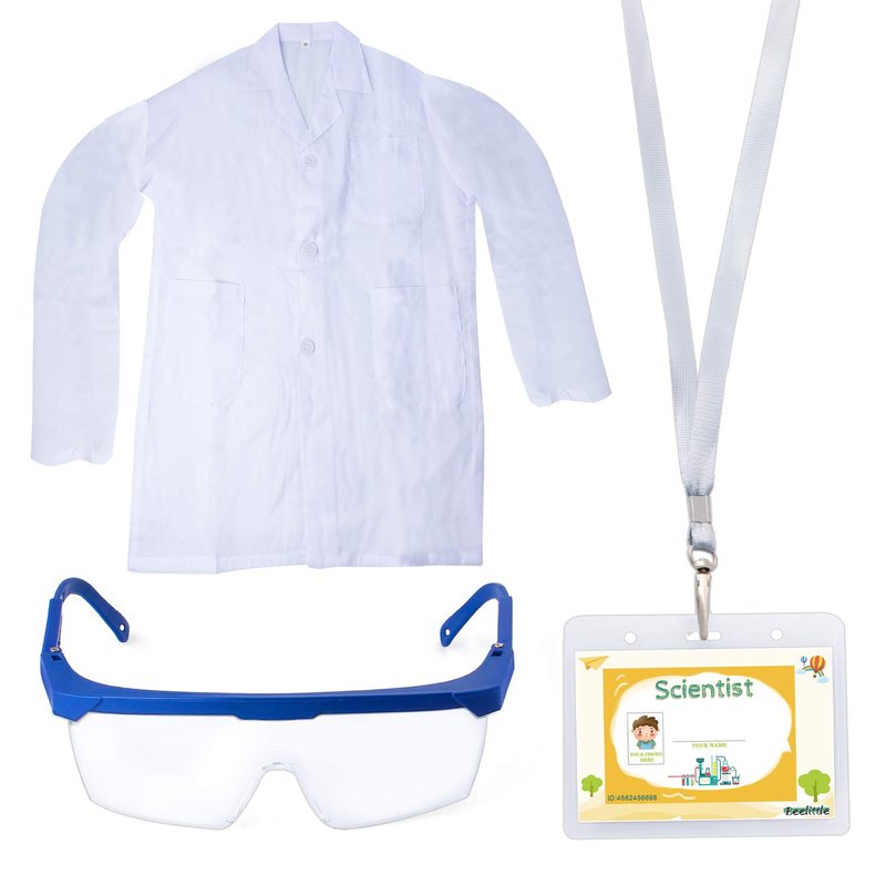 - The protective safety glasses can prevent liquid from being spattered into eyes, the lab coat can avoid soiling the clothes and the writable ID badge is good to create a primary scientist logo for you, start with this scientist costume kit, enjoy your exploring time