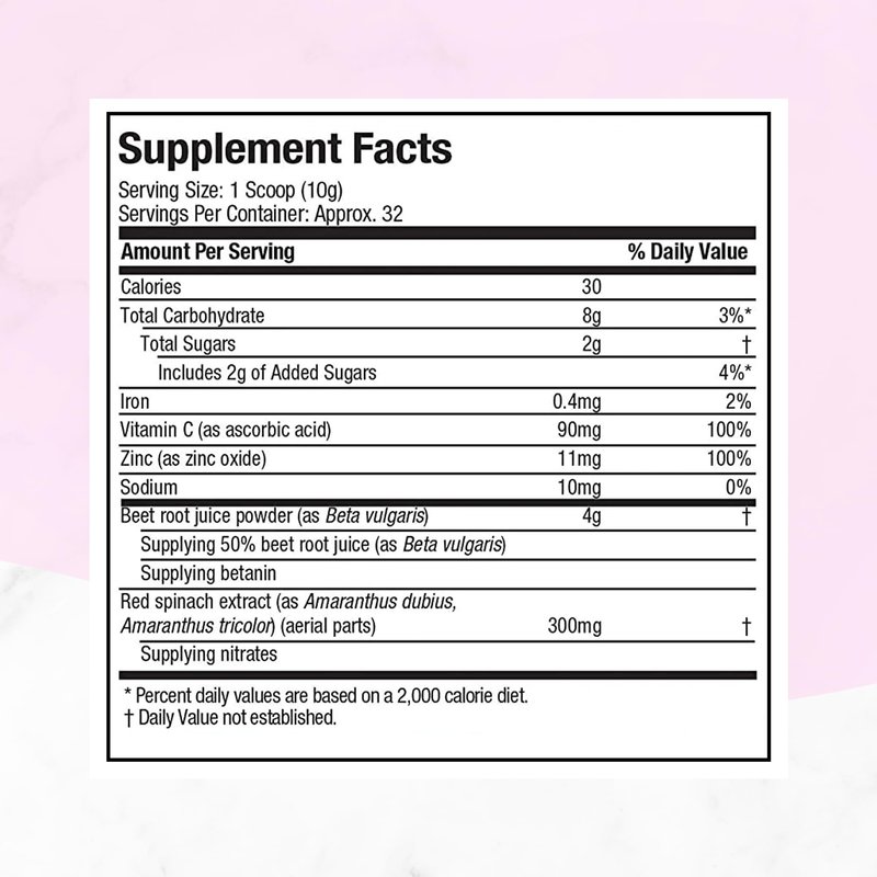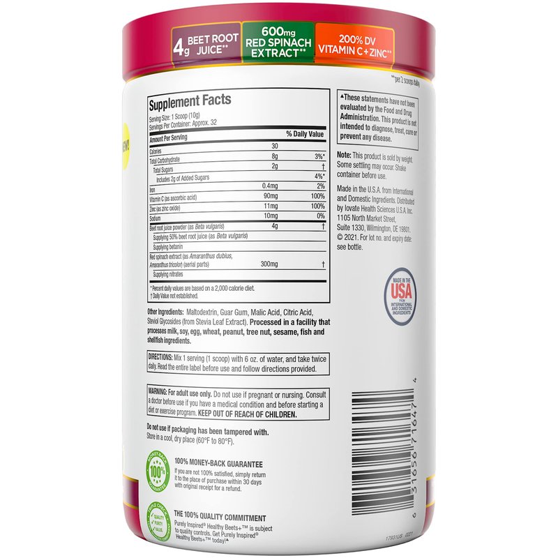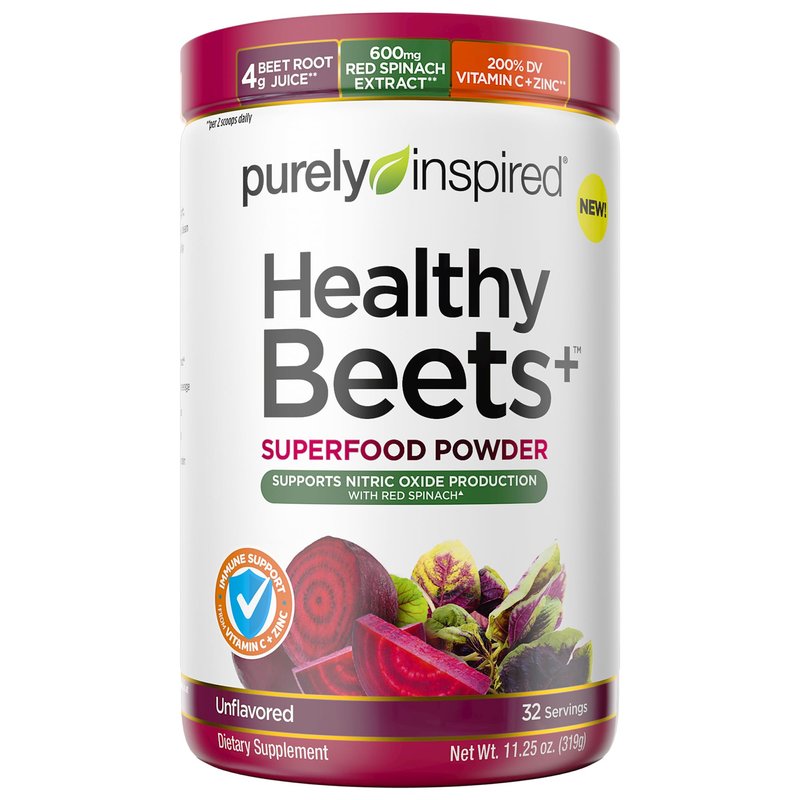 - BEET ROOT POWDER - Purely Inspired Healthy Beets plus Superfood Powder delivers 4g Beet Root Juice, 600mg Red Spinach Extract and 200% DV Vitamin C & Zinc (per 2 scoops)