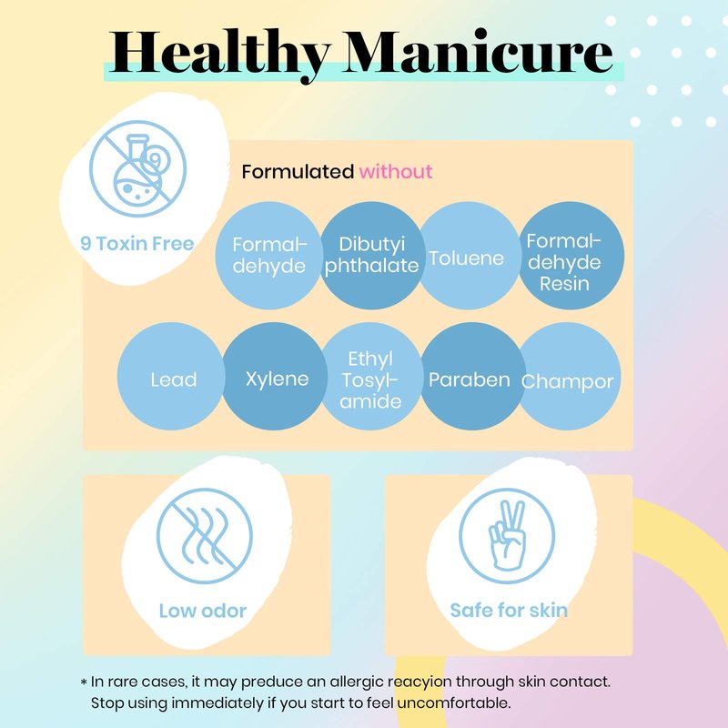 - WARNING: May cause an allergic reaction by skin contact. Read directions for use carefully. Professionally formulated and only used for nails. Avoid contact with eyes, mouth, and skin. In case of contact with them, rinse immediately with water. If there is any incident, contact the doctor immediately. Stop using the product if redness and itching develop. Keep out of the reach of children.